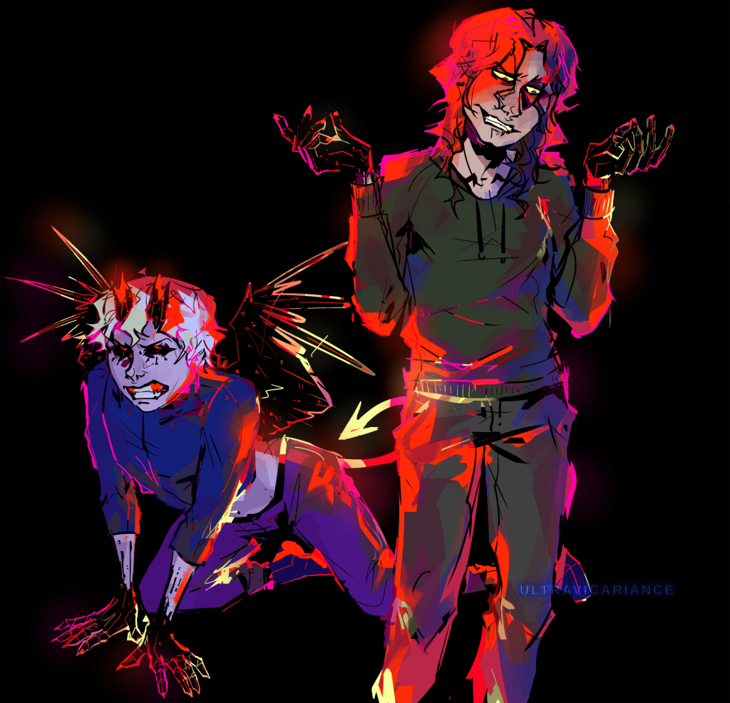 Alas, I am doomed (by my own means) to draw Ursur and Cro surrounded by a black darkness void. One of my biggest ambitions now is to disrupt this single-note nothing, and bring something out of its depths . . .