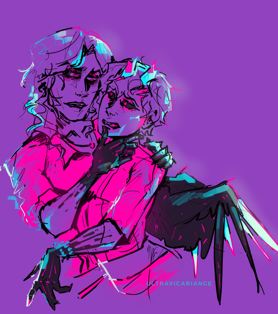 I did not have much conceptual drive here, mostly just tried to find something fun to draw. But Ursur leaning in, getting close, whispering sweet nothing in Cro’s ears? Saying things with such intimacy? Horrible things about that deep-rooted fear that marks the very existence? Those disgusting secrets?